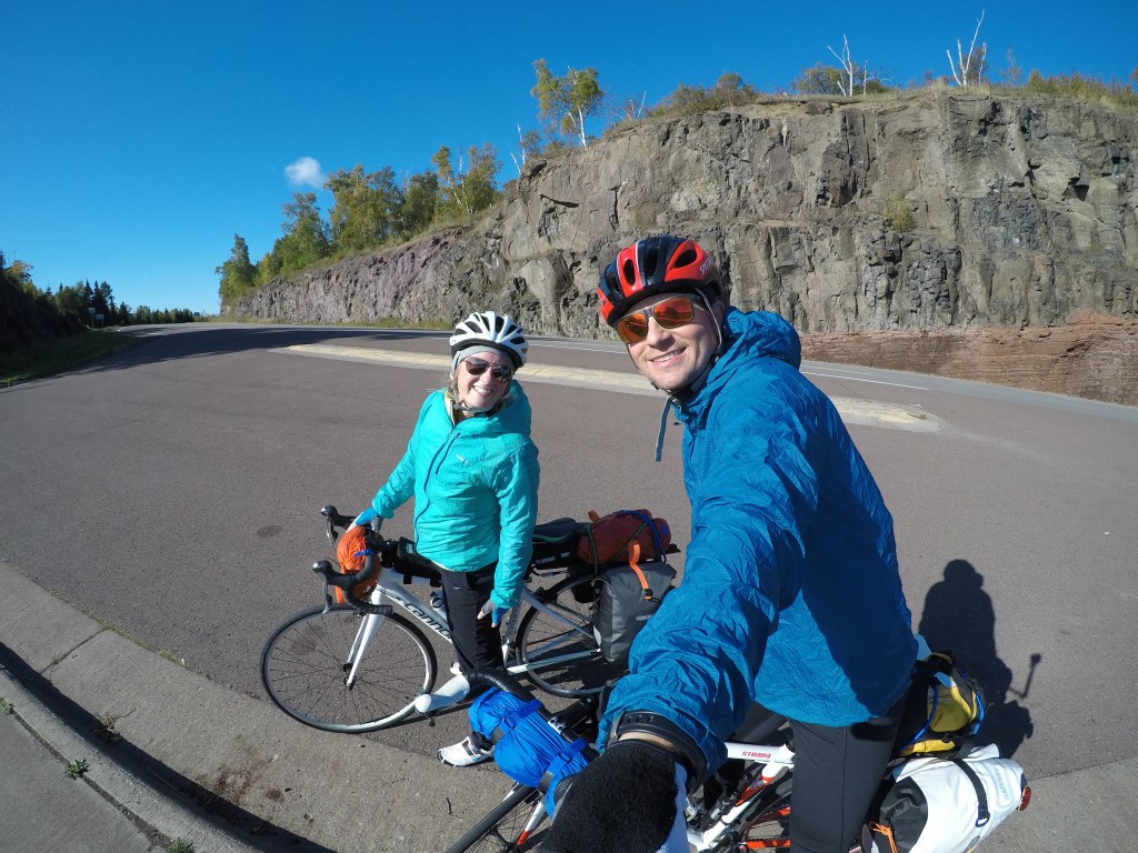 Before this trip, I’d biked a few miles at a time and never with any equipment. After we decided to bike-pack from Canada to Duluth, a distance we estimated at about ~160 miles on Hwy 61, we loaded our bikes for a ride about 25 miles around a local park.