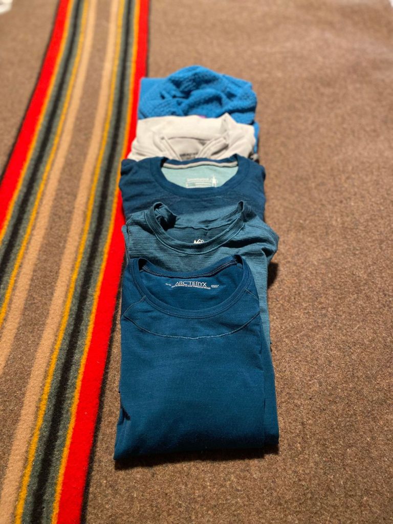 This top here: Patagonia Capilene Wool layer is a close favorite as well. Again-Patagonia doesn’t appear to be making this layer anymore. The top picture is from 2018 after I’d had the layer for at least 3 years. The picture below, 2020…looks the exact same. No fading, pilling, nothing. A unique feature with this top, is the snap-down front making it perfect for custom venting.