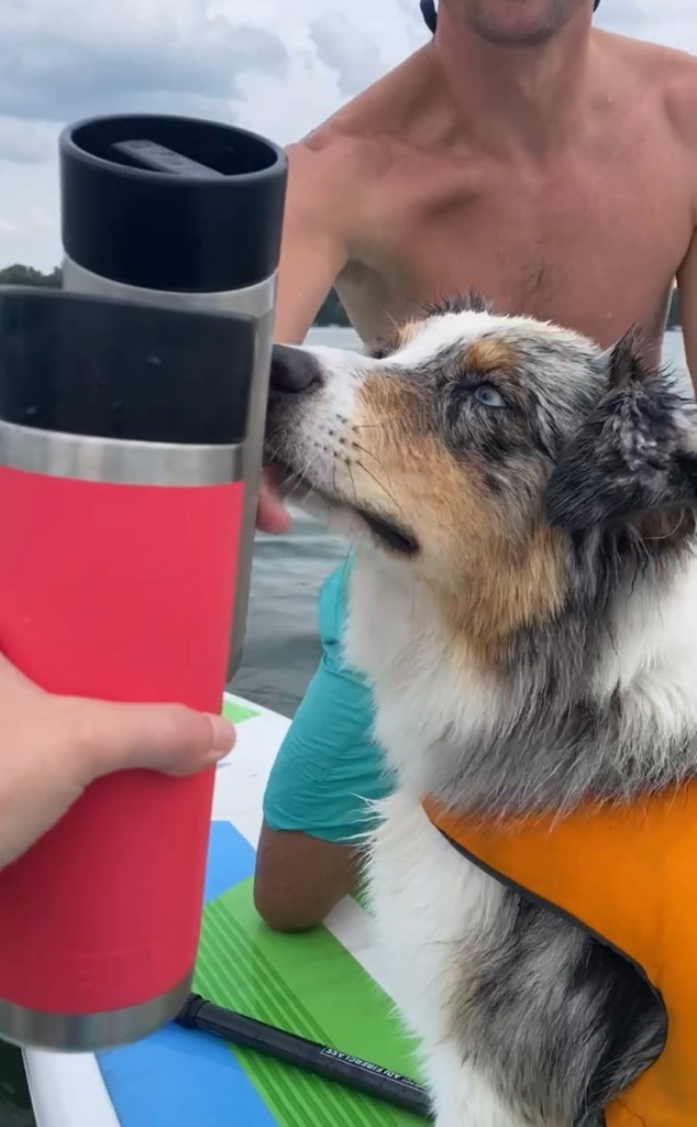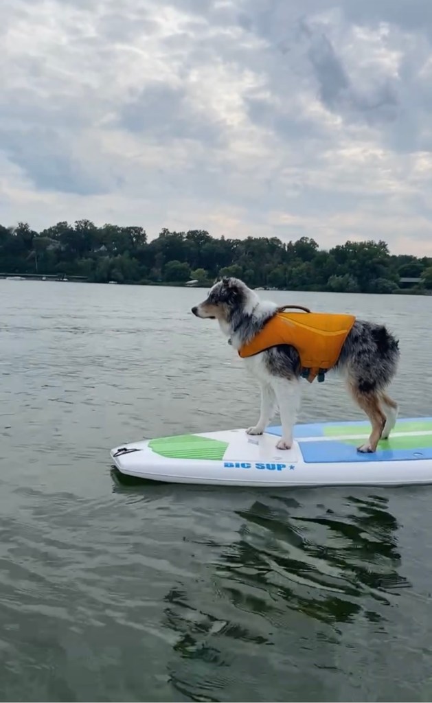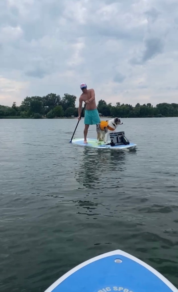 2) Bring a toy! One that floats, preferably one that’s bright (and not blue)! Sage loves the frisbee. The word makes his butt wiggle and as soon as he sees it, that’s where his focus goes. So we bring one….and we throw it….and throw it…..we make sure to give him plenty of breaks-and stop to give him clean water to drink so he doesn’t over-do it on lake water. The best part of bringing your dog to SUP on a hot day, it’s one of the best ways to get them exercise.